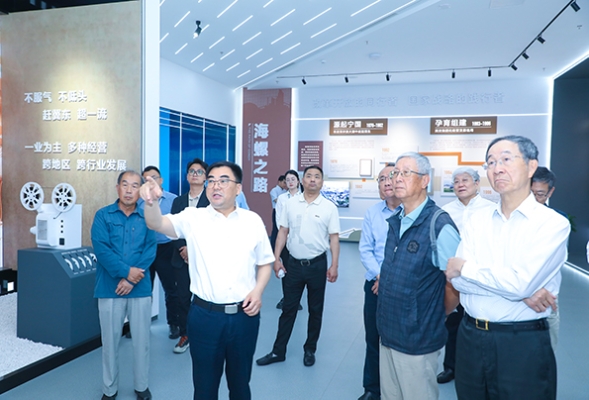 在海螺集團展廳,一件件展品、一幅幅圖片、一組組數據,生動勾勒出海螺集團從小到大、由弱變強的奮進畫卷。代表團一行不時駐足詢問,深入了解海螺集團在水泥制造、新能源、新材料、環保、數字經濟、現代服務貿易等領域的多元化布局以及取得的豐碩成果。