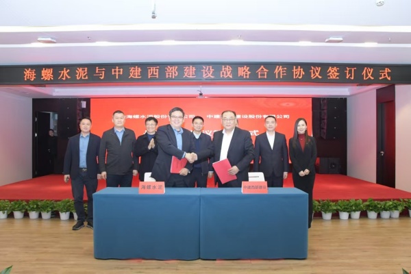 2025年2月17日,海螺水泥與中建西部建設在成都舉行戰略合作協議簽約儀式。海螺水泥黨委書記、總經理李群峰與中建西部建設黨委副書記、總經理白建軍代表雙方簽署協議。海螺水泥副總經理、董事會秘書虞水,中建西部建設副總經理李明杰,財務總監、首席合規官、總法律顧問邵舉洋等出席簽約儀式。