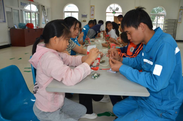 一進公司大門,我就驚呆了——這里好漂亮啊!綠油油的大樹,平整的草坪像綠毯子,遠處有個好高好高的建筑(小編注:預熱器),像個巨人。