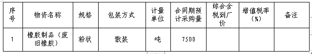 1.標的物:橡膠制品(廢舊橡膠)。