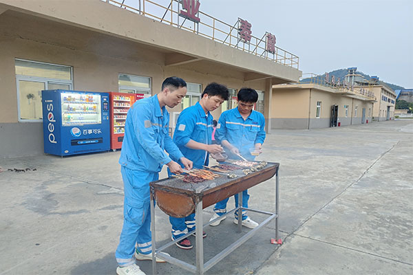 當(dāng)體育競技的激情慢慢消散,一場溫馨的煙火氣為活動增添了別樣的溫情。4月29日晚,本次活動的壓軸環(huán)節(jié)職工自助燒烤盛宴在廣英水泥食堂廣場溫馨開啟。辦公室提前備足食材,精心布置場地,職工及家屬圍坐燒烤架旁,親手烤制美食,共享勞動成果。現(xiàn)場香氣四溢,歡聲笑語不斷,職工們暢談工作與生活,氛圍輕松融洽。活動還特別為參與者準(zhǔn)備了飲料、水果及零食,為節(jié)日增添了一份甜蜜與溫情。