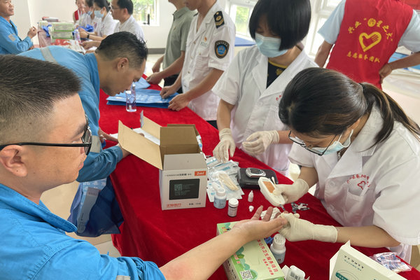 此次義診涵蓋血壓測(cè)量、血糖檢測(cè)、體重測(cè)量、心肺功能聽(tīng)診等常規(guī)健康檢查,義診現(xiàn)場(chǎng),前來(lái)咨詢(xún)和檢查的員工絡(luò)繹不絕,活動(dòng)現(xiàn)場(chǎng)氣氛熱烈。醫(yī)護(hù)人員認(rèn)真地為每一位員工進(jìn)行細(xì)致的檢查和診斷。在量血壓、測(cè)血糖的服務(wù)臺(tái)前,醫(yī)護(hù)人員細(xì)致地為每位員工測(cè)量數(shù)據(jù),耐心講解血壓、血糖數(shù)值所代表的健康意義,針對(duì)偏高或偏低的情況給予個(gè)性化的飲食、運(yùn)動(dòng)建議。內(nèi)科醫(yī)生耐心解答關(guān)于高血壓、頸椎病、季節(jié)性過(guò)敏等問(wèn)題的咨詢(xún);中醫(yī)醫(yī)生運(yùn)用中醫(yī)傳統(tǒng)診療方法,為員工們進(jìn)行把脈診療,并根據(jù)每個(gè)人的體質(zhì)開(kāi)具個(gè)性化的養(yǎng)生建議。
