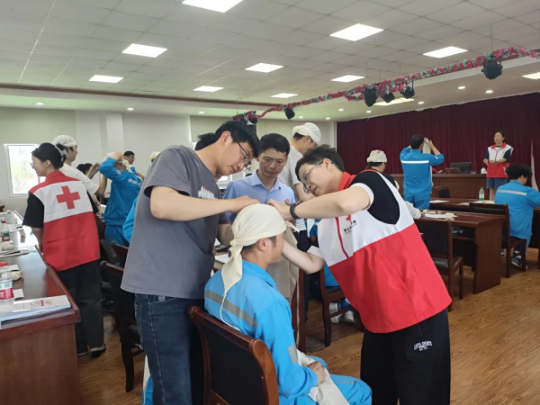 象山海螺 曹祥明:這次培訓的創傷救護實操讓我收獲頗豐。若發現同事手臂被劃傷大量出血,我如今能迅速反應:立即用敷料或干凈的布料覆蓋在傷口上,用手直接持續用力壓迫傷口止血(避免盲目拔出異物),抬高傷肢減少血流;持續加壓包扎后,如果敷料被血液浸透,不要更換,再取敷料覆蓋在原有的敷料上繼續壓迫止血。日常預防同樣關鍵:規范操作設備保持作業環境整潔避免尖銳物暴露、正確佩戴勞保用品,這些細節能有效減少創傷風險。看似簡單的繃帶纏繞,實則是守護生命的技能——當講師演示“8字包扎法”固定關節時,我深刻體會到"人人會急救"對企業安全的意義。我會將這份技能轉化為行動,讓意外來臨時不再手足無措。